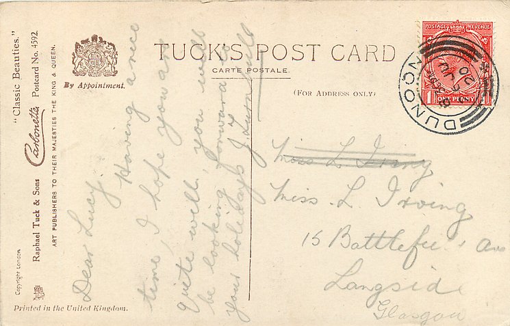 HAND COLOURED CARBONETTE, for same images not HAND COLOURED see 4592, PRINTED IN ENGLAND