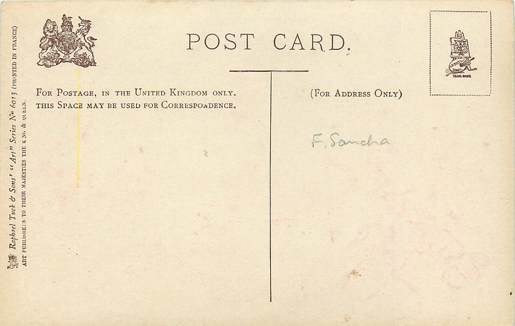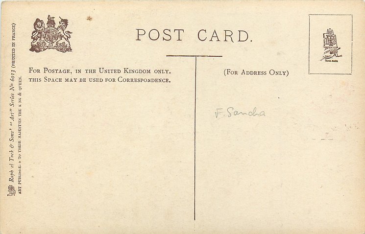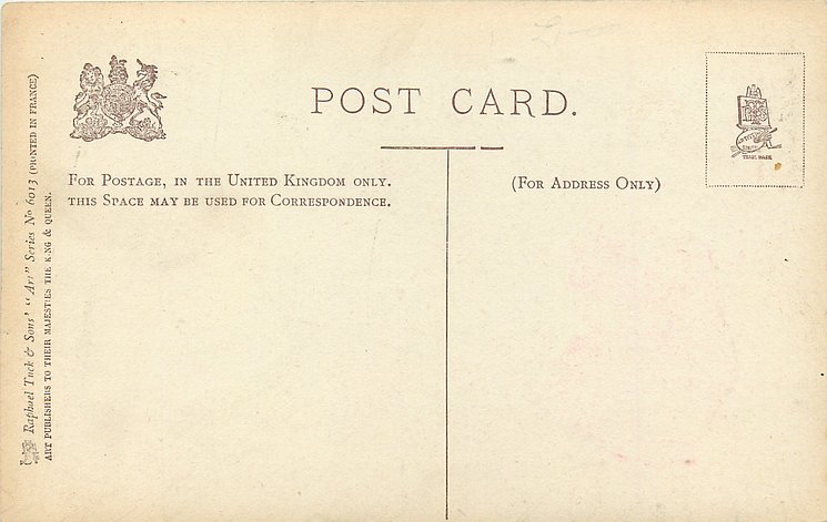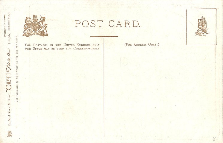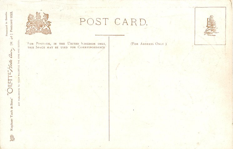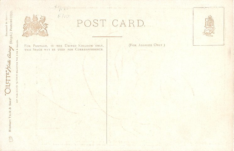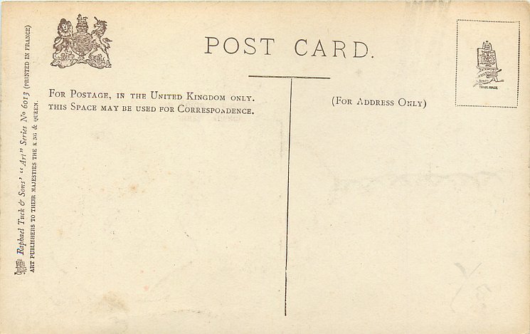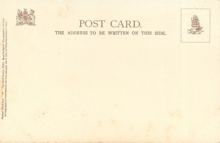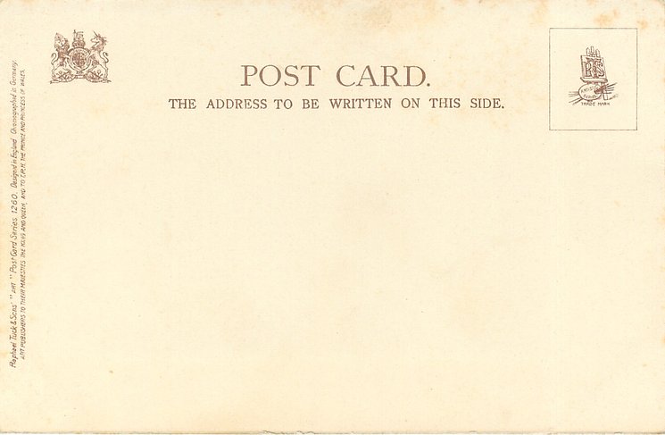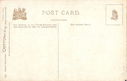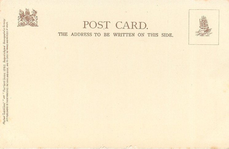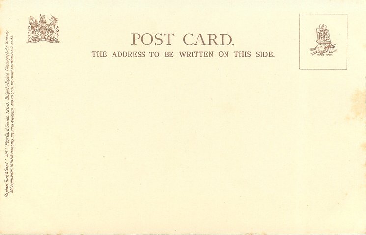 ART, DESIGNED IN ENGLAND, CHROMOGRAPHED IN GERMANY, same images 1749, see Booth and Lund, listed in 1904 POSTCARD Catalogue