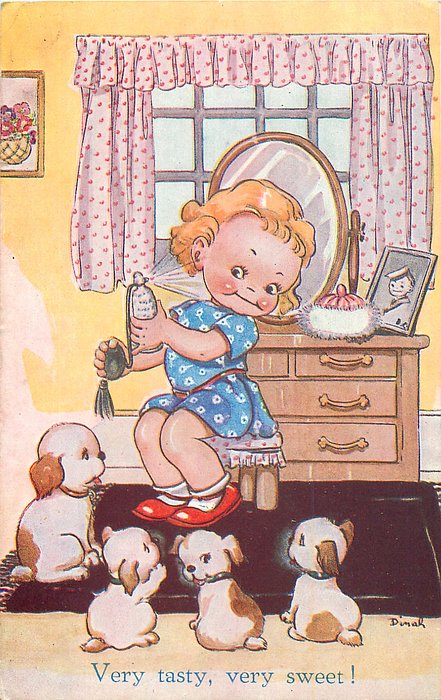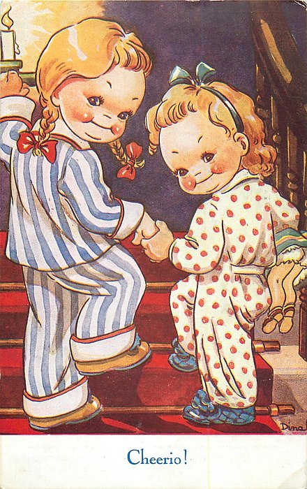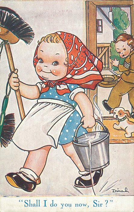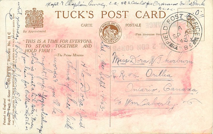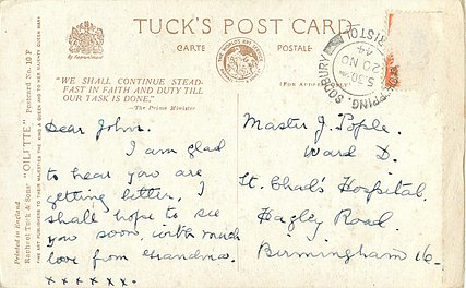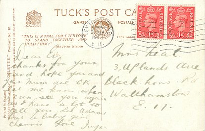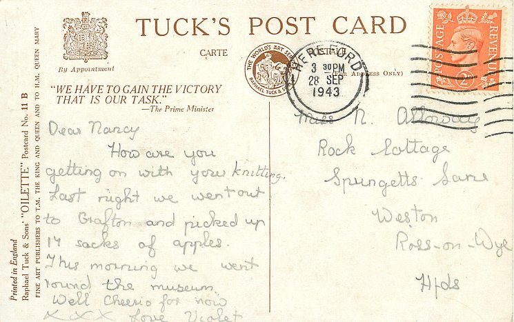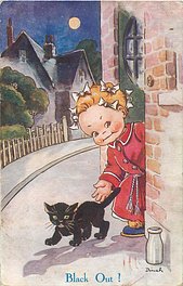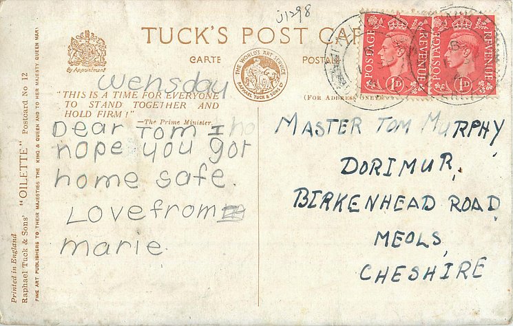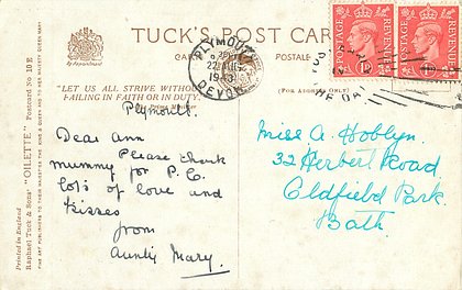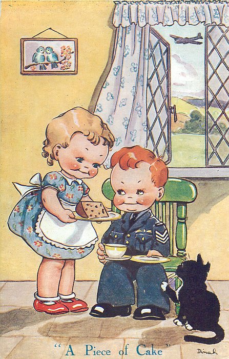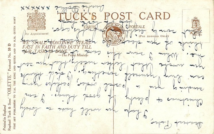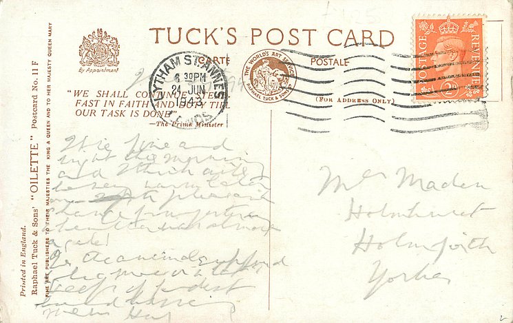 OILETTE, PRINTED IN ENGLAND, patriotic slogan on back, same image and title in set "comic children World War II period, unnumbered"