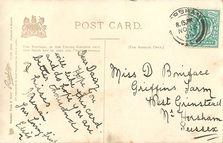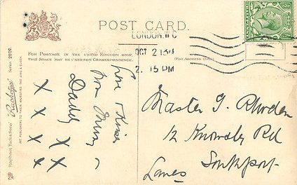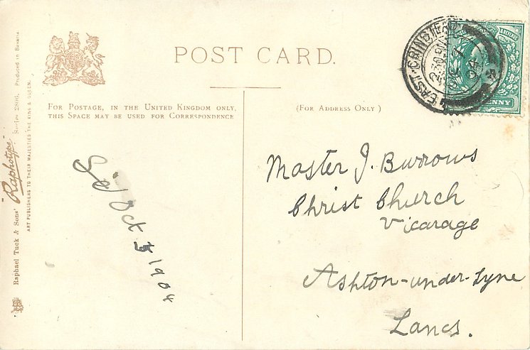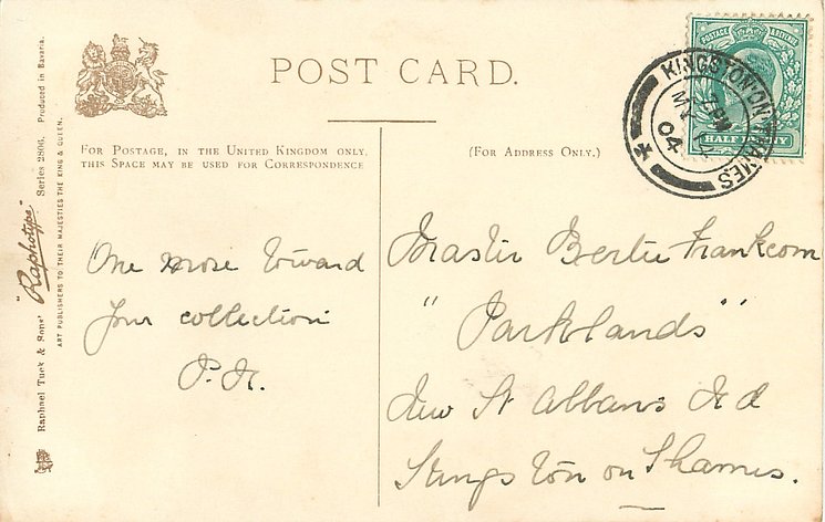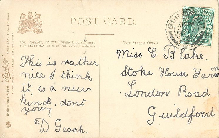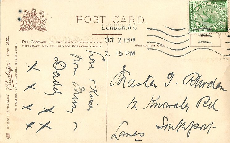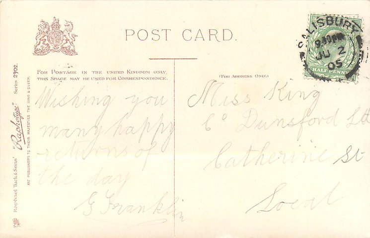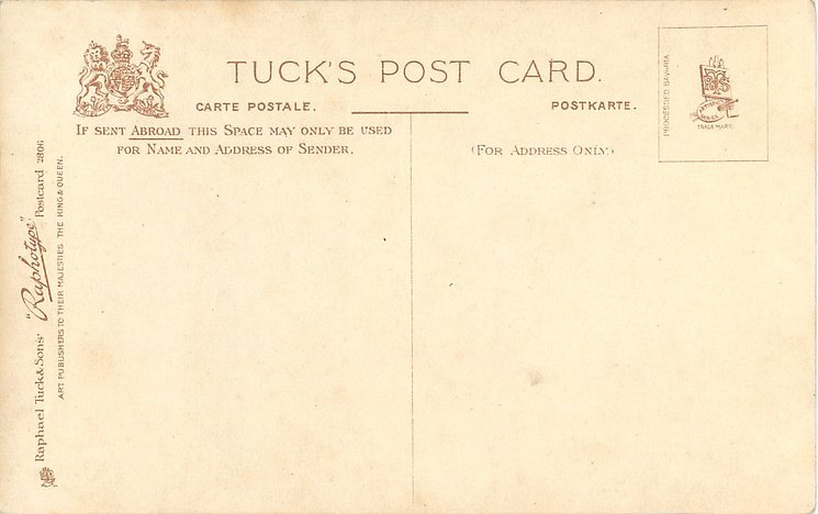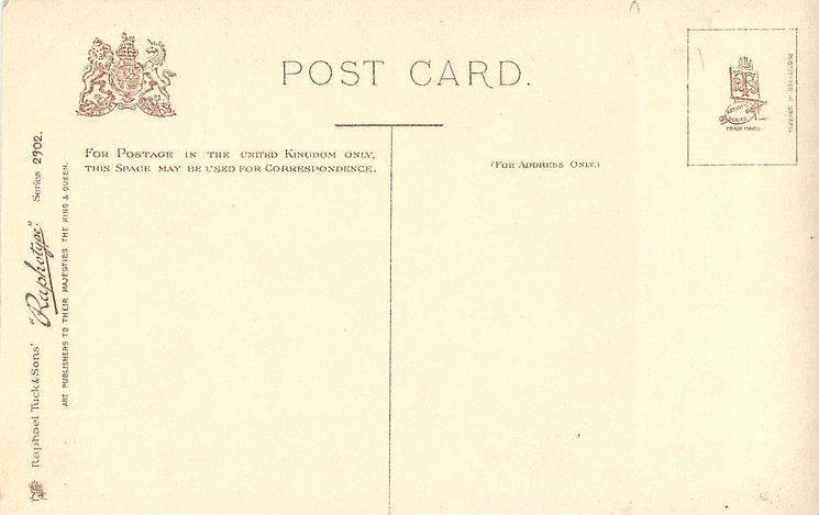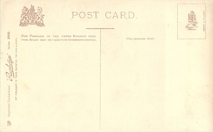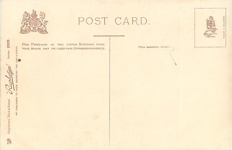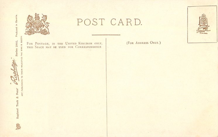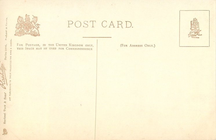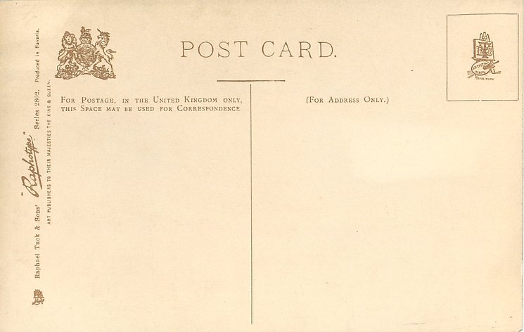 monochrome, RAPHOTYPE, PRODUCED IN BAVARIA, same images in green/black 2902, listed in 1904 POSTCARD Catalogue