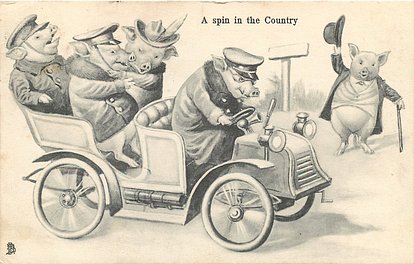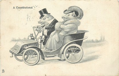 u/b OILETTE, German/International backs, GESETZLICH GESCHUTZT, same images English backed OILETTE "TALLY HO" 6676, untitled French backed SERIE 567
