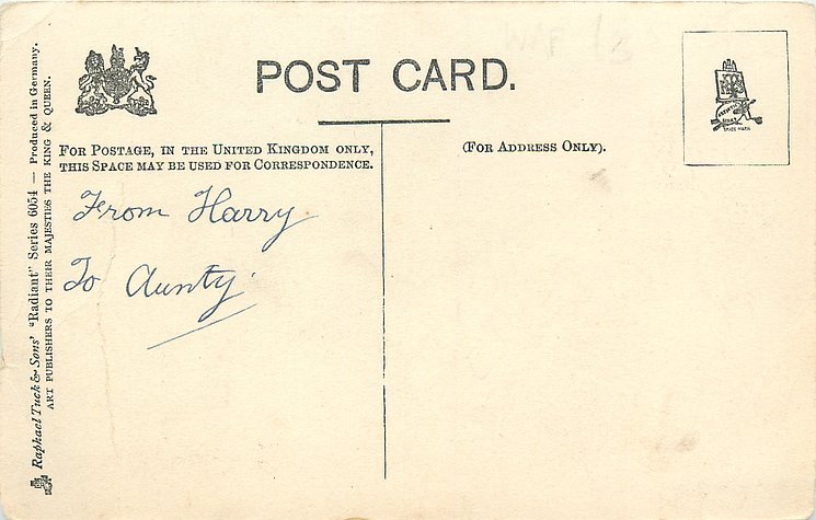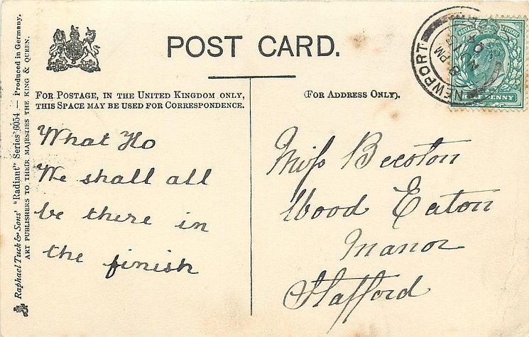 title on English card I'M AFRAID I SHALL NOT BE ABLE TO GET OVER