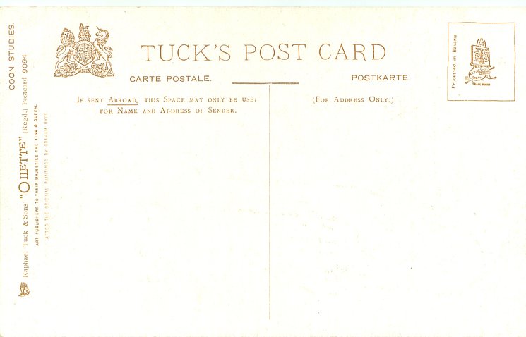 same image, English back OILETTE 9O92 COON KIDS, I'SE FOND OF MUSIC!