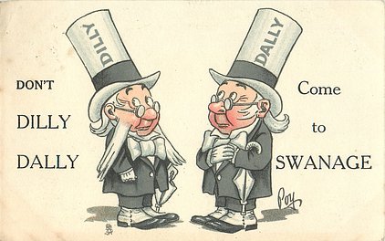 come opt. "DON'T DILLY-DALLY BUT COME TO SIDMOUTH" (15.00)