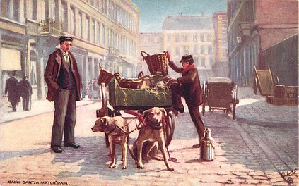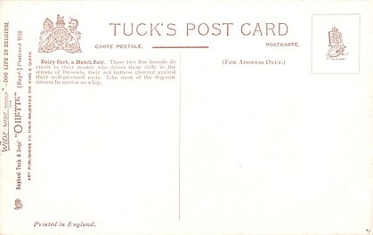 OILETTE, PRINTED IN ENGLAND or PRINTED IN THE UNITED KINGDOM, 2 backs, listed in 1930 POSTCARD Catalogue, same images, German backs HUNDE HUMOR 951