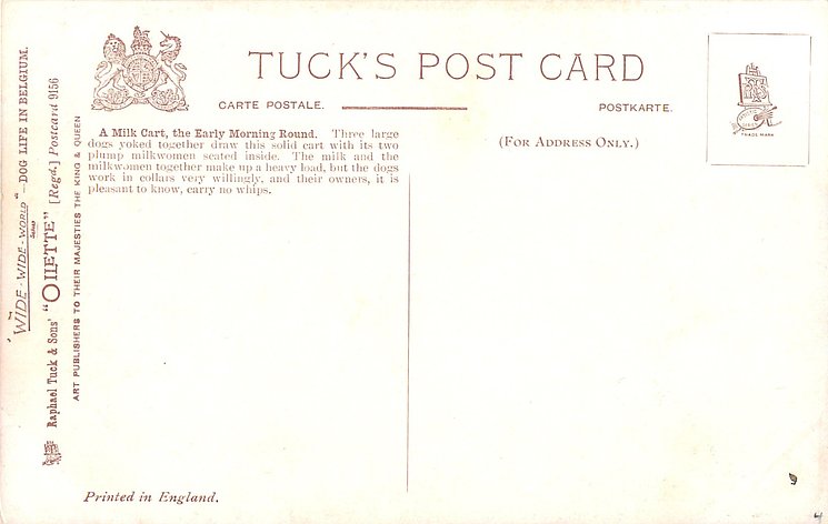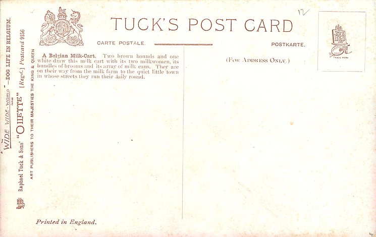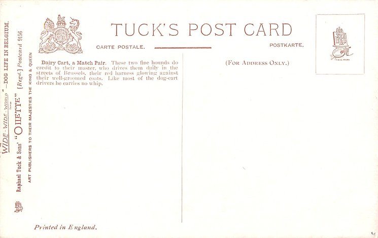 OILETTE, WIDE-WIDE-WORLD, PRINTED IN ENGLAND, listed in 1908/1909 & 1911/1912 1912/1913 & 1913/1914 POSTCARD Catalogues
