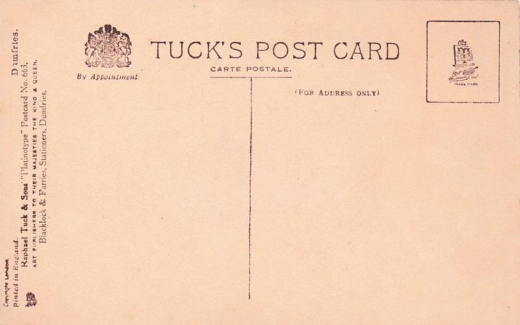 PRINTED IN ENGLAND, COPYRIGHT LONDON, pub.BLACKLOCK & FARRIES, STATIONERS, DUMFRIES