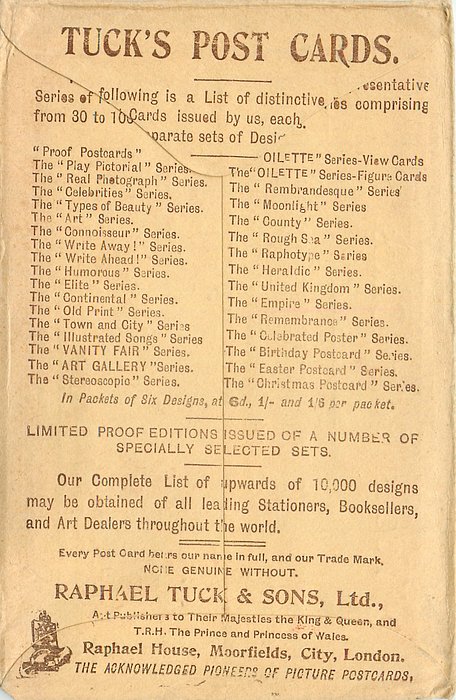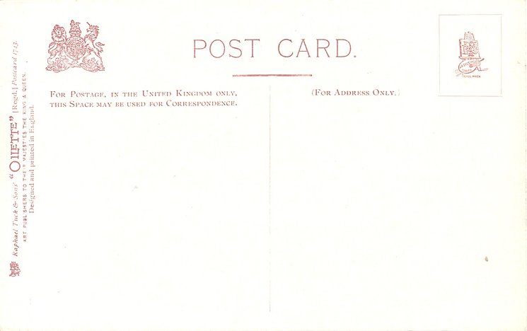 OILETTE, DESIGNED AND PRINTED IN ENGLAND, listed in 1904 & 1908/1909 &1911/1912 POSTCARD Catalogues