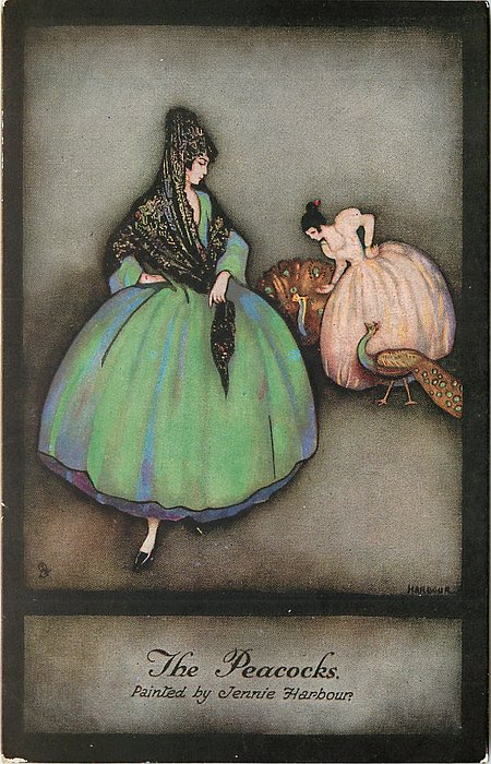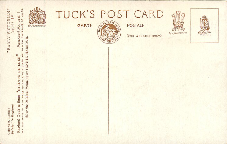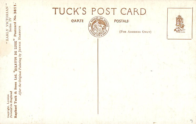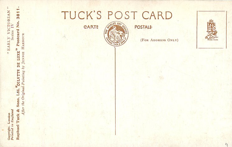 OILETTE DE LUXE, PRINTED IN ENGLAND, COPYRIGHT LONDON, AFTER THE ORIGINAL PAINTING BY JENNIE HARBOUR., comes oilfacsim but not so trade named, comes gold bevelled, 2 backs, listed in 1932 ART SERVICE Catalogue