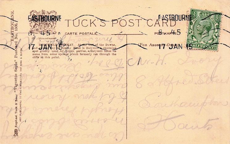 real photograph, PRINTED IN ENGLAND, greetings on back, PRINTED PAPER (on back), title on back