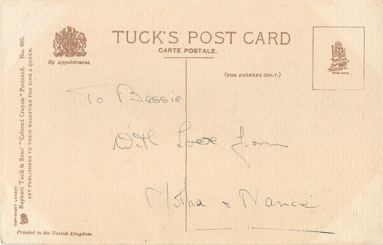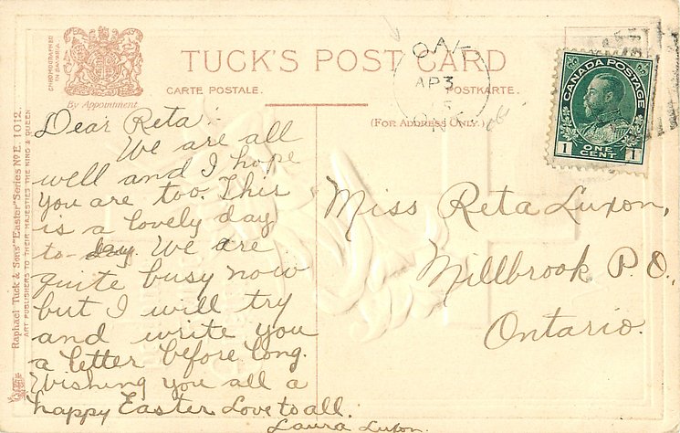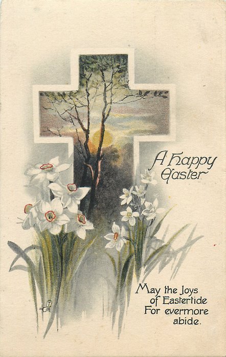 verse:- EACH DAINTY BLOSSOM OF THE SPRING EACH BUD UPON THE SPRAY. SWEET MESSAGES FOR EASTER BRING TO ONE AND ALL TO-DAY.