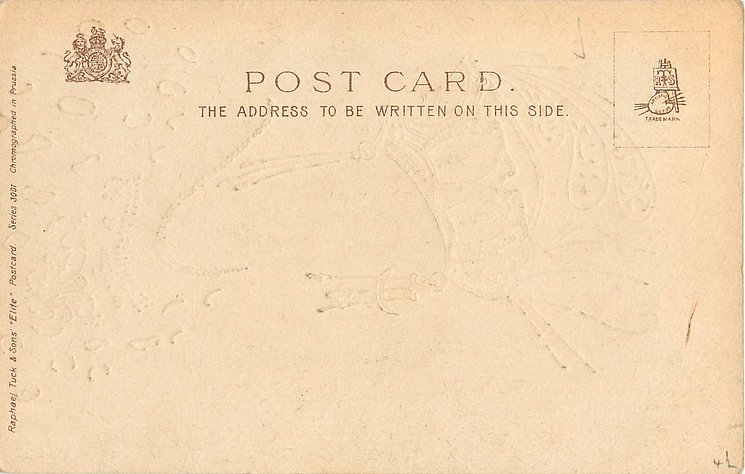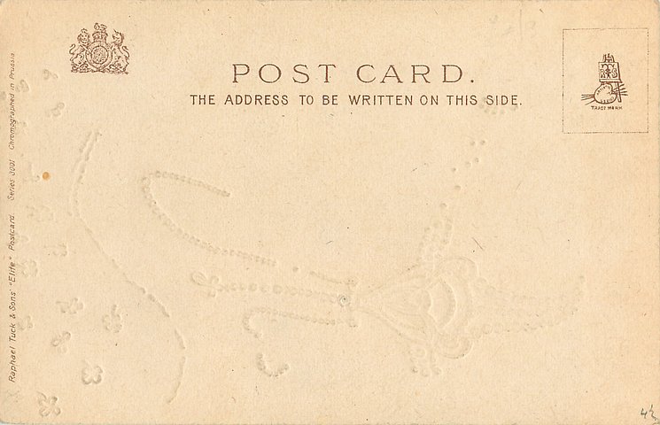 ELITE, u/b, embossed with gilt inlay, CHROMOGRAPHED IN PRUSSIA, listed in 1904 POSTCARD Catalogue