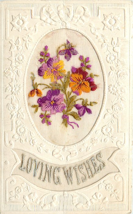 BRODERIE D'ART (World War I. period), mainly PRODUCED IN ENGLAND but some were PRODUCED IN FRANCE, embossed borders