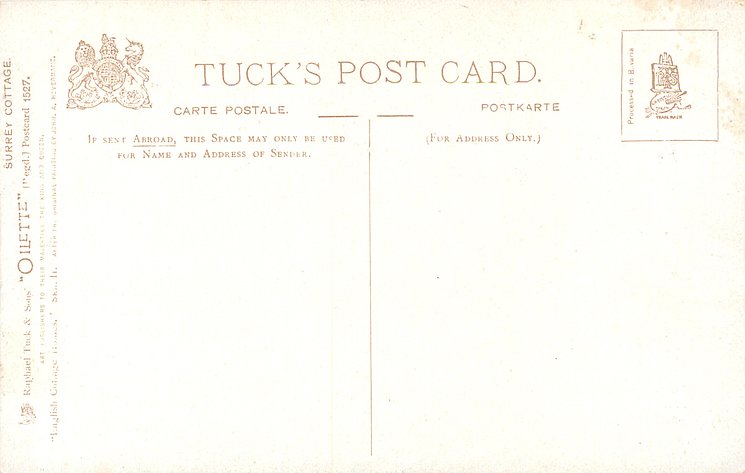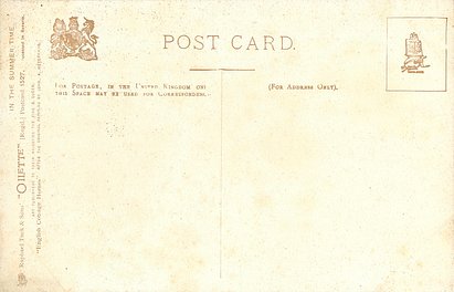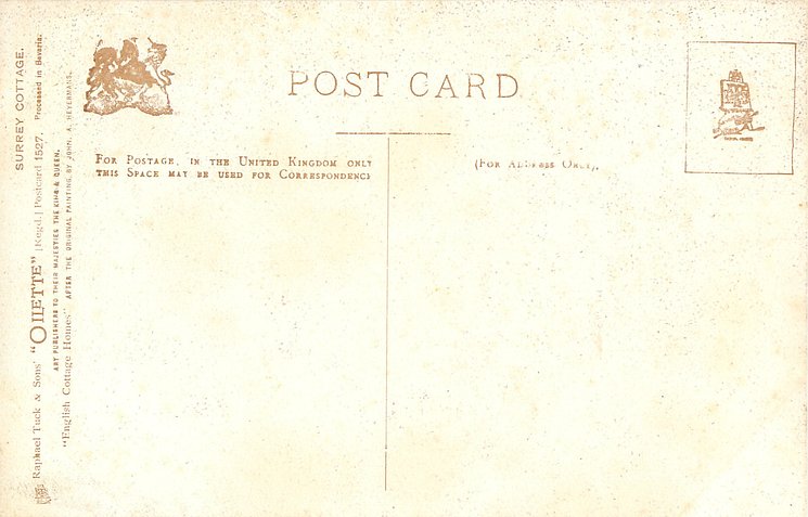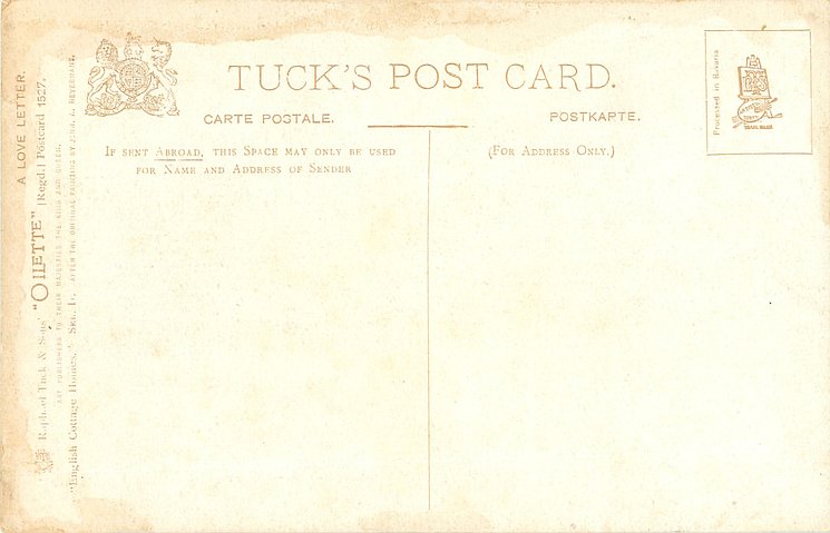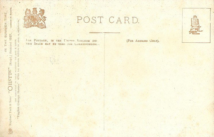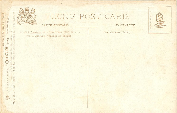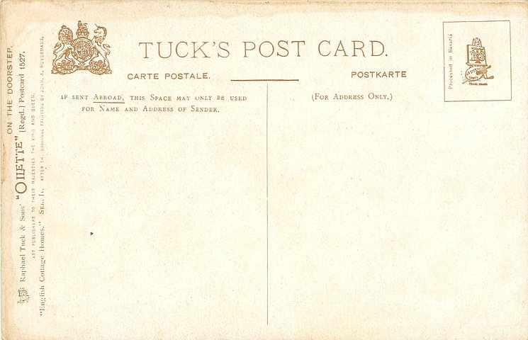 OILETTE, 3 backs, PROCESSED IN BAVARIA (in stamp box or not)listed in 1908/1909 & 1911/1912 & 1913/1914 Postcard Catalogues