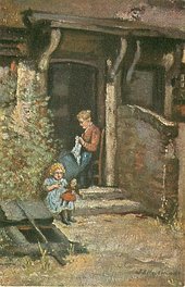 OILETTE, 4 backs, CHROMOTYPED IN BAVARIA or PROCESSED IN BAVARIA (in stamp box or not), listed in 1904 & 1911/1912 & 1913/1914 Postcard Catalogues, French backs RAFAELETTE SERIE 581 INTERIEURS BRETONS, German/International backs 129 & 1531