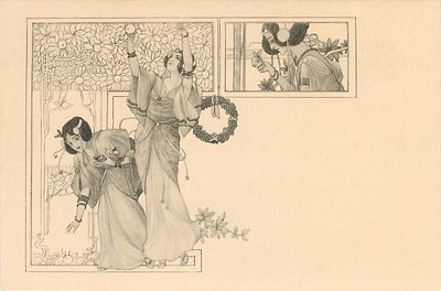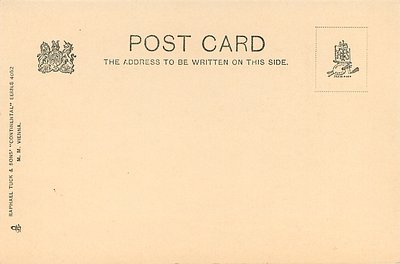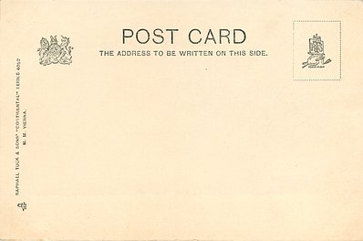 u/b, ART, CHROMOGRAPHED IN PRUSSIA come with & w/o Christmas greetings below the insets, listed in 1904 POSTCARD Catalogue