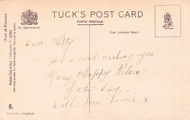 HAND COLOURED CARBONETTE, for same images not HAND COLOURED see 4293, PRINTED IN ENGLAND