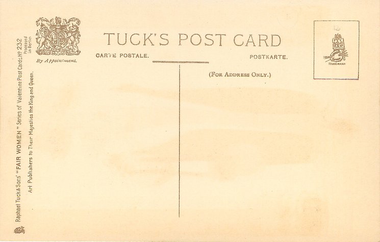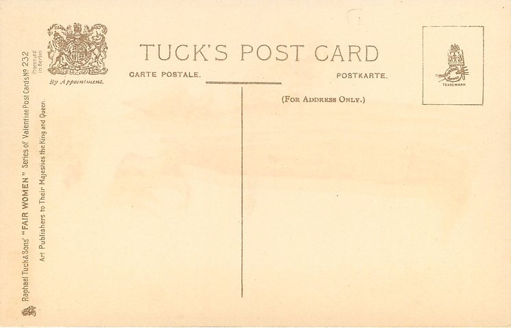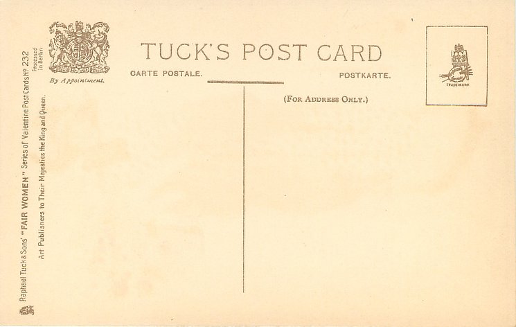 u/b, come hand-coloured, 2 backs, PHOTOTYPED IN BERLIN, listed in 1904 & 1908/1909 & 1911/1912 Postcard Catalogues