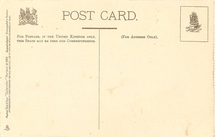 OILETTE, PRINTED IN ENGLAND, COPYRIGHT LONDON, come with greetings printed on back, AFTER THE ORIGINAL PAINTING BY ALICE MARSHALL., listed in 1926/1927 Postcard Catalogue