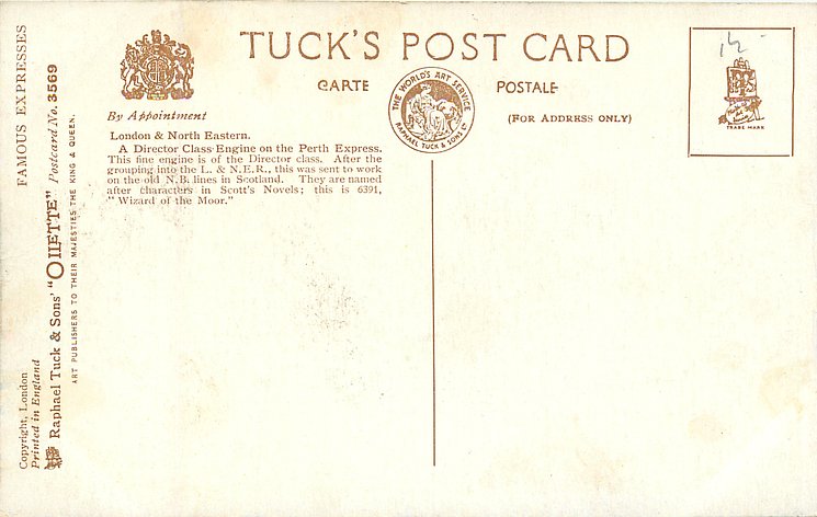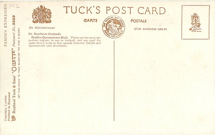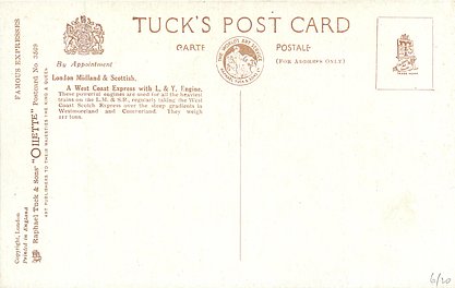 OILETTE, PRINTED IN ENGLAND, 2 backs, listed in 1930 Postcard Catalogue