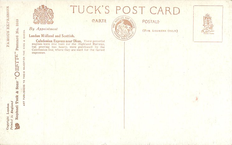 OILETTE, PRINTED IN ENGLAND, COPYRIGHT LONDON, 3 backs, listed in 1930 Postcard Catalogue