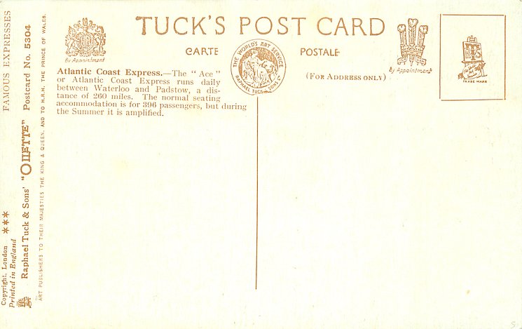 OILETTE, WIDE-WIDE-WORLD, PRINTED IN ENGLAND or PRINTED IN UNITED KINGDOM with or w/o COPYRIGHT LONDON, listed in 1908/1909(USA) & 1911/1912 & 1913/1914 & 1926/1927 Postcard Catalogues