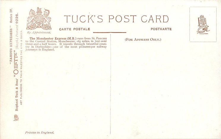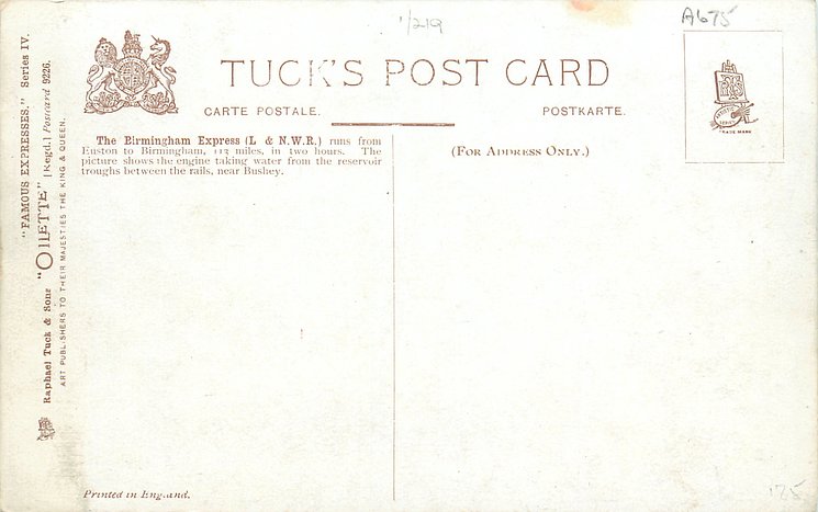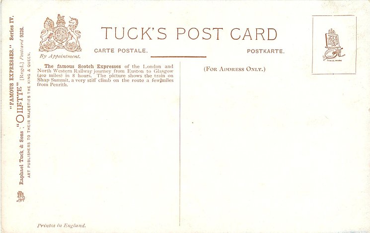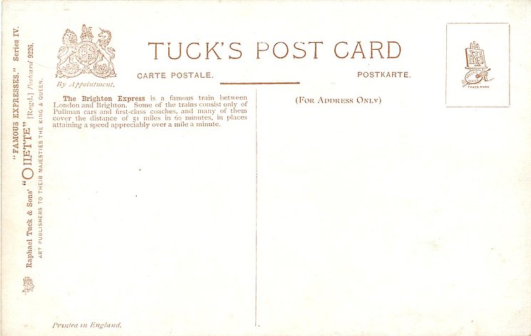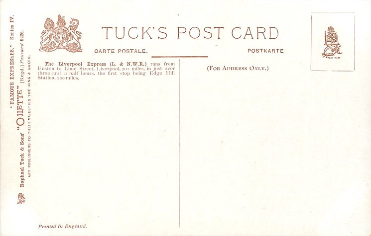 OILETTE, PRINTED IN ENGLAND, with or w/o COPYRIGHT LONDON, come as LONDON COUNTY COUNCIL REWARD CARD, unnumbered, famous expresses