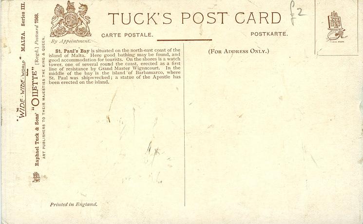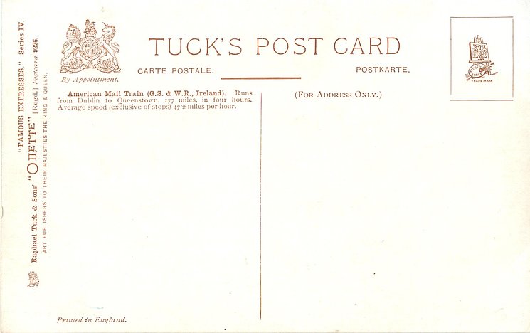 OILETTE, PRINTED IN ENGLAND, listed in 1908/1909(USA) postcard catalogue