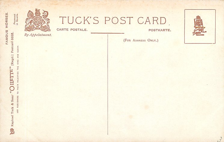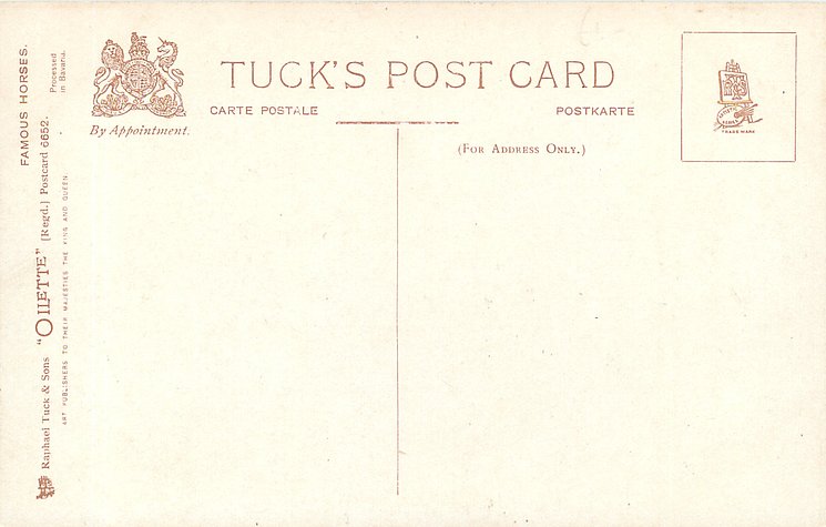 OILETTE, PRINTED IN ENGLAND, COPYRIGHT LONDON, 2 backs, come OILFACSIM with O.F. prefixes, come O/F but not so trade named, listed in 1930 POSTCARD Catalogue