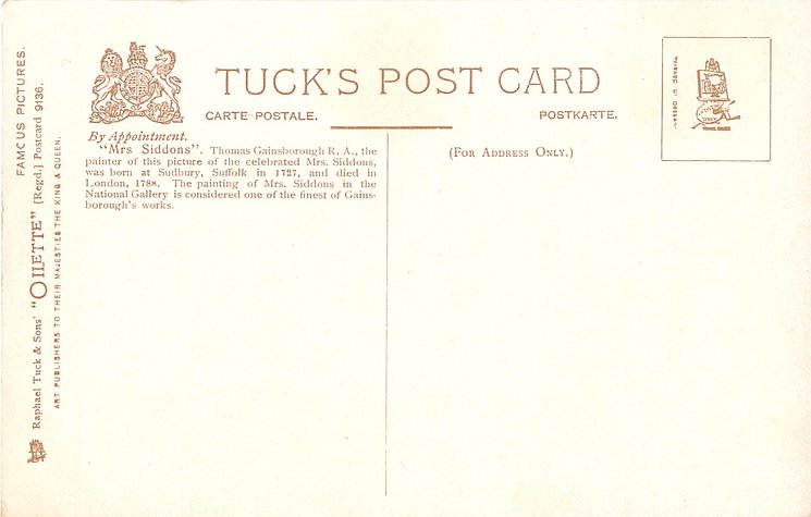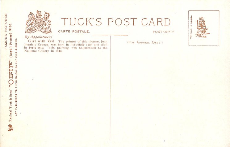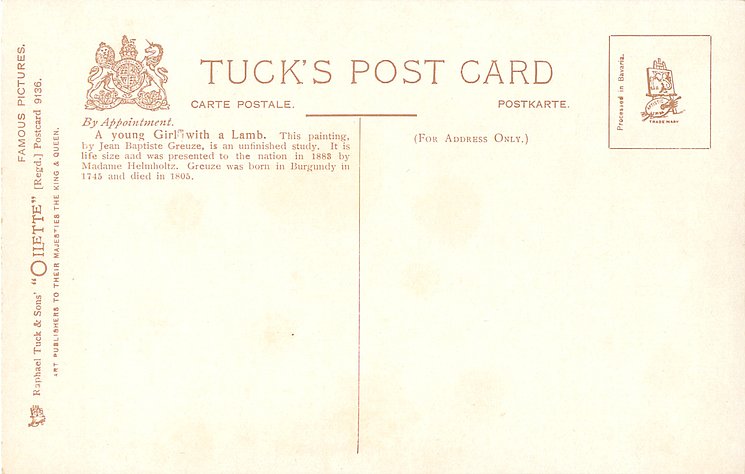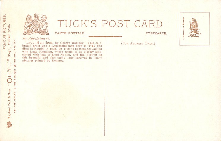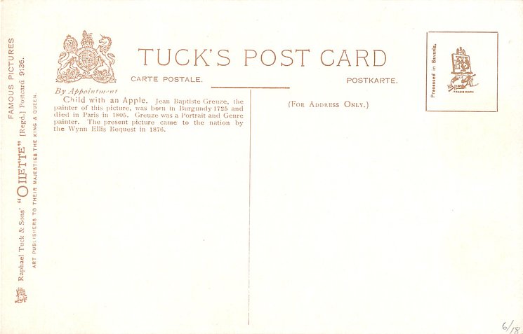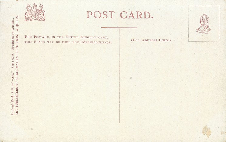DESIGNED AT THE STUDIOS IN ENGLAND & PRINTED AT THE FINE ART WORKS IN GERMANY, undivided backs, listed in 1904 POSTCARD Catalogue