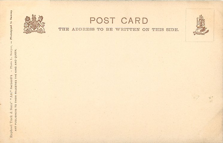 u/b or d/b, sepia or grey/black, come hand-coloured, PHOTOTYPED IN SAXONY, come sepia or grey/black, PHOTO L. SAWYER, listed in 1904 POSTCARD Catalogue