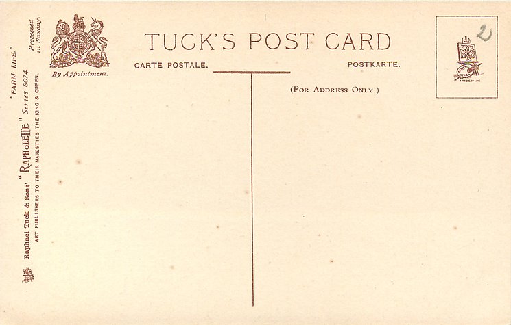 OILETTE, PRINTED IN ENGLAND, 2 backs, listed in 1908/1909 & 1911/1912 & 1913/1914 Postcard Catalogues