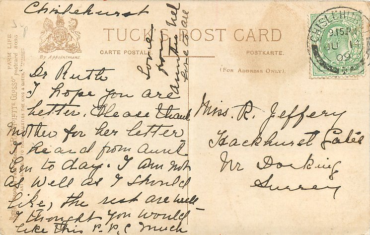 OILETTE, PLATE-MARKED, PRINTED IN ENGLAND, listed in 1908/1909 & 1911/1912 Postcard Catalogue