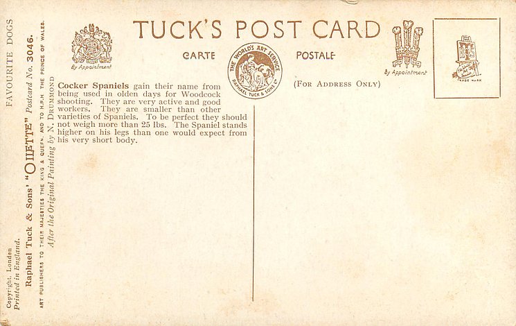 OILETTE, PRINTED IN ENGLAND, COPYRIGHT LONDON, AFTER THE ORIGINAL PAINTING BY N. DRUMMOND., some of same images OILETTE 9381
