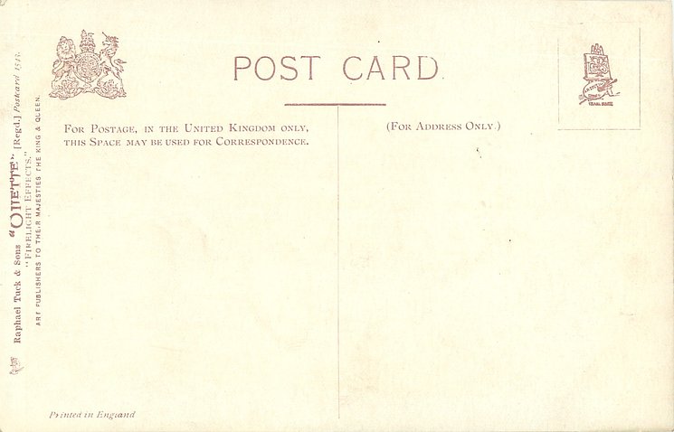 AFTER THE BLACK & WHITE DRAWING BY K. CRANFORD, same image English back OILETTE 1543 BY THE FIRESIDE