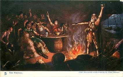 AFTER THE BLACK & WHITE DRAWING BY ALLAN STEWART same image, English back OILETTE 1543 THE VIKINGS