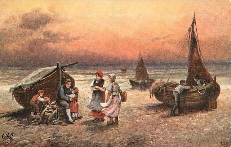 sepia, PRINTED IN ENGLAND, come hand-coloured