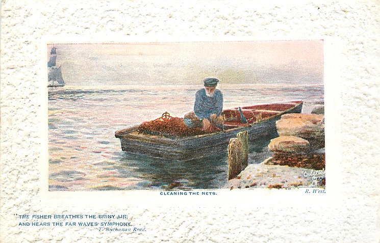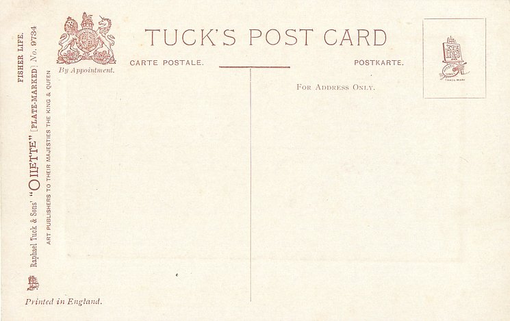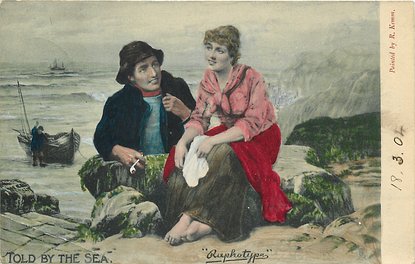 OILETTE, PLATE-MARKED, PRINTED IN ENGLAND, listed in 1908/1909 & 1911/1912 Postcard Catalogue, same images THE BREEZY SEA SERIES II