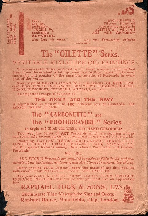 OILETTE, PRINTED IN ENGLAND, listed in 1908/1909 & 1911/1912 & 1913/1914 Postcard Catalogues