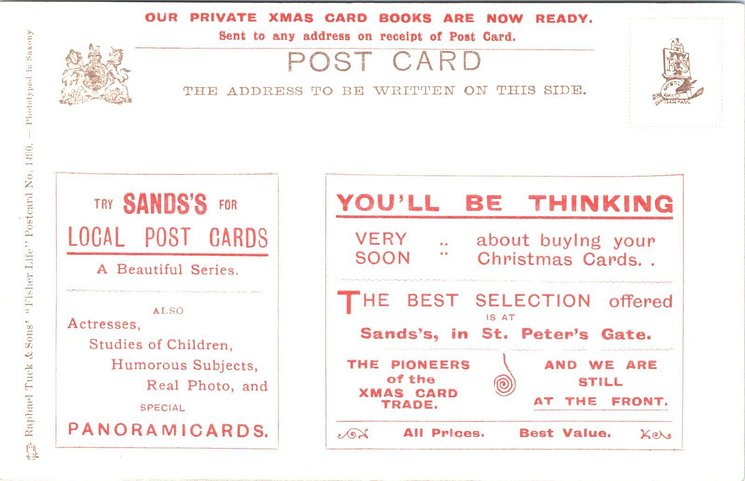 u/b, shades of grey/blue black, PHOTOTYPED IN SAXONY, same images in 1487-1492, listed in 1904 POSTCARD Catalogue
