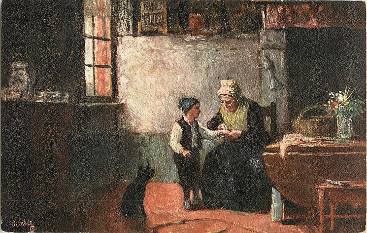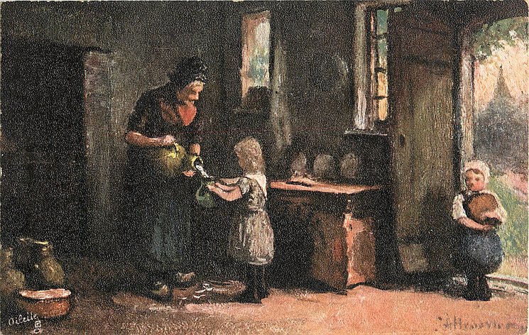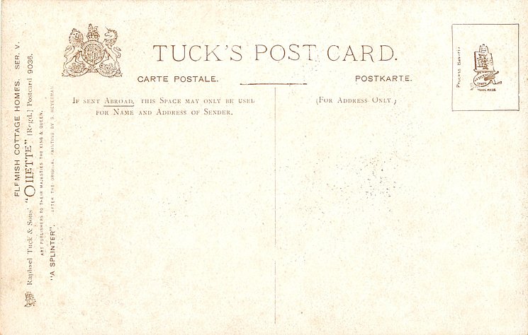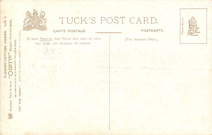 OILETTE, CHROMOTYPED IN BAVARIA or PROCESSED IN BAVARIA, listed in 1904 & 1908/1909 & 1911/1912 & 1913/1914 Postcard Catalogues, same images OILETTE German/International back, u/b, 128 & 1530, French back, RAFAELETTE 540 with or w/o title INTERIOR FLAMAND