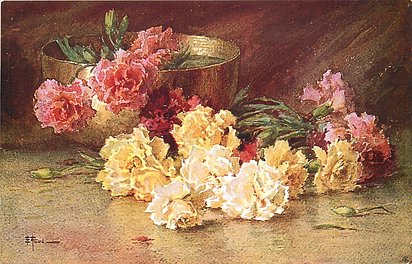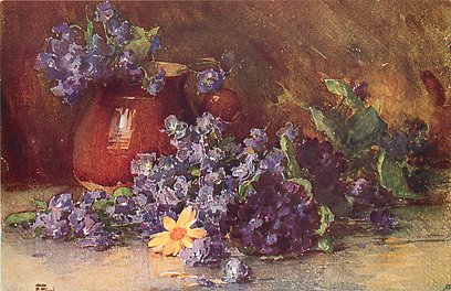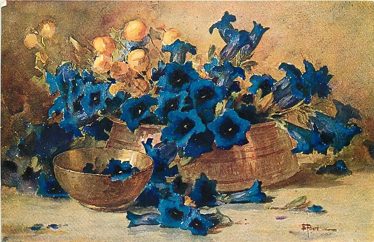 OILETTE, PRINTED IN AUSTRIA, STUDIES OF FLOWERS IN BOWLS FROM THE ORIGINAL PAINTINGS on packet, listed in 1930 Postcard Catalogue