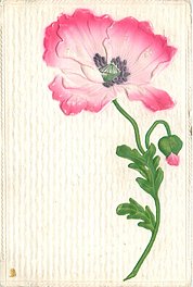 FLORAL PASTEL, PROCESSED IN SAXONY (in stamp box), heavy embossing, backed cards, handcoloured, various greetings overprints in pink