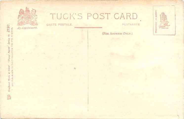 3 backs, CHROMOGRAPHED IN SAXONY (in stamp box), listed in 1908/1909 & 1911/1912 Postcard Catalogue, same images French backs SERIE 611, come glittered