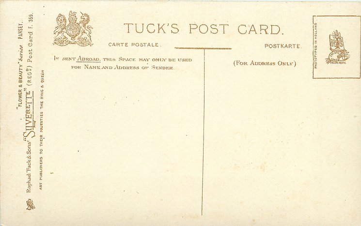 SILVERETTE, PHOTOTYPED IN HOLLAND. Tuck spelling error for PANSY.