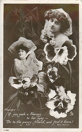 same image FG220, comes w/o flower name on back, LOVE DROPP'D EYELIDS AND A KISS — SUCH OUR BREATH AND BLUENESS IS. -- LEIGH HUNT.