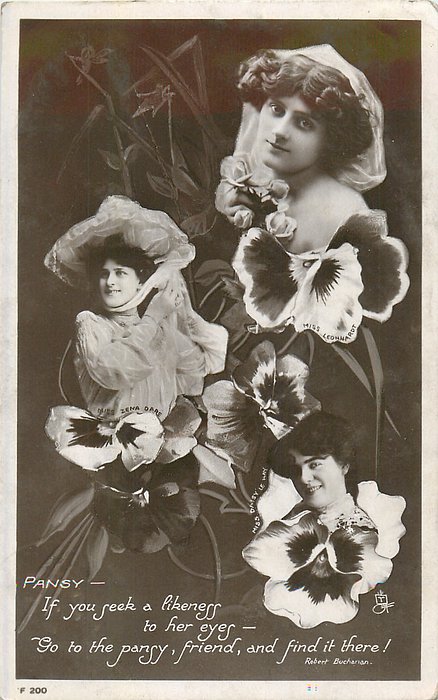 PHOTO BIOGRAPH, same image F168. FG168, 2 backs, glittered, comes w/o flower name on back,