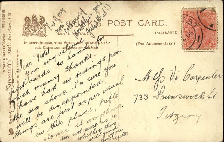 same image FG179, 3 backs, comes hand-coloured & glittered, MISS MADGE VINCENT omitted from some printings Ruth Vincent (1874 Eng 1955 London) Madge Vincent younger sister of Ruth (1884- Eng.- ) with D'Oyly Carte Opera Co.in chorus, ;many short movies (133) with married name Madge Kirby. (Maurice Kiriby)