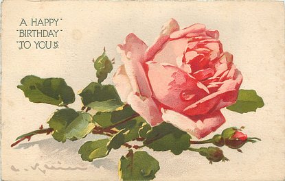 come opt. in blue MANY HAPPY RETURNS & verse:- "HAPPY DAYS TO YOU, AND MAY YOU E'ER BA FAVOURED BY GOOD FORTUNE."