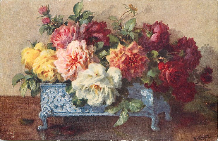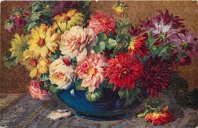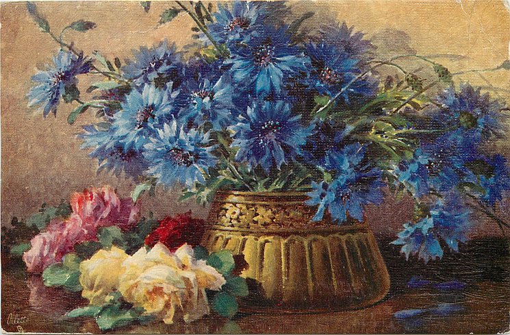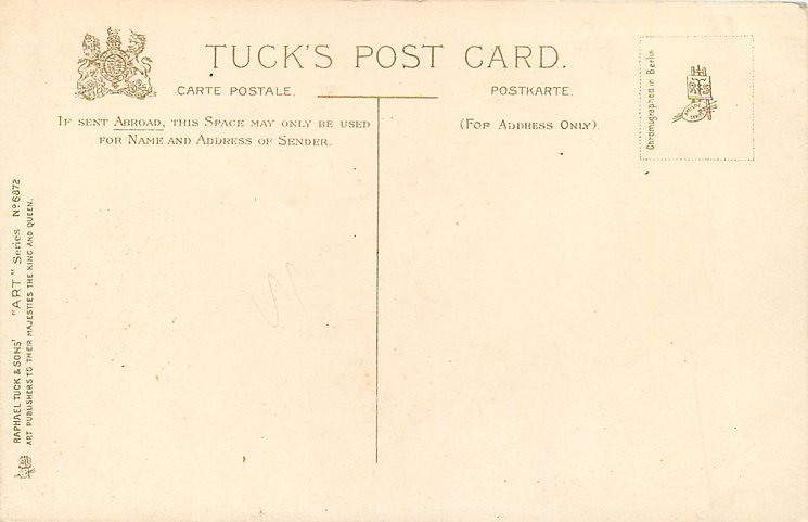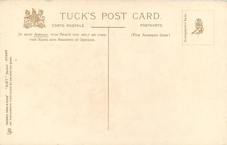 ART, CHROMOGRAPHED IN BERLIN (in stamp box), gilt background, listed in 1908/1909 & 1911/1912 Postcard Catalogue